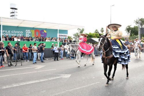 “Marca una fecha histórica en la que Sonora tuvo especial relevancia a nivel nacional y como tal, quisimos conmemorarlo con un desfile cívico-deportivo, un desfile rápido, un desfile de una hora con 20 minutos específicamente, en el que se manifestaron los principales acontecimientos de la relevante cita de la Revolución Mexicana”, expresó.