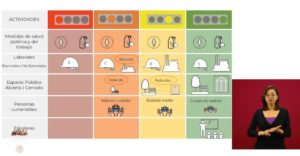 En el espacio público abierto habrá restricciones menores, y limitaciones mayores para el espacio público cerrado como cines, museos, templos religiosos o teatros. Así como el cuidado de personas será en término medio.