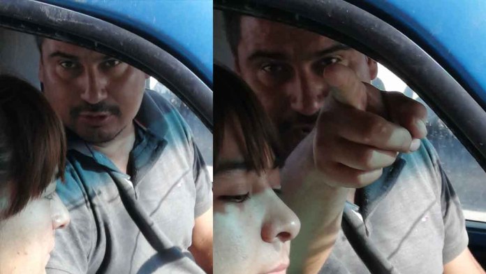 La enfermera de nombre Ángeles pudo grabar el momento en que un sujeto a bordo de un vehículo le arrojó un vaso con café hirviendo solo por su profesión.