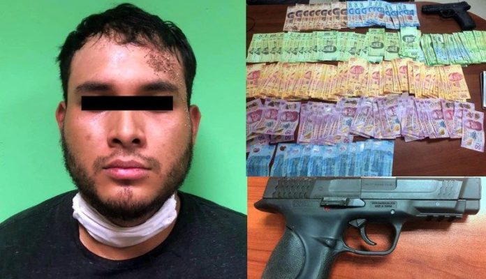 Agentes AMIC arriban al lugar para controlar la situación, encontrándole a José Orlando “N.” la pistola de gas, así como un sobre manila conteniendo en su interior billetes de diferentes denominaciones que sumaron 37 mil 680 pesos.