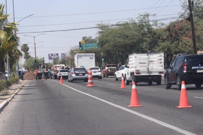 HERMOSILLO, SON.- Un nuevo trabajo de reparación inició en el bulevar García Morales con Quintero Arce, personal de Agua de Hermosillo realiza cambio de tubería por lo que se cerraron algunos carriles de circulación.