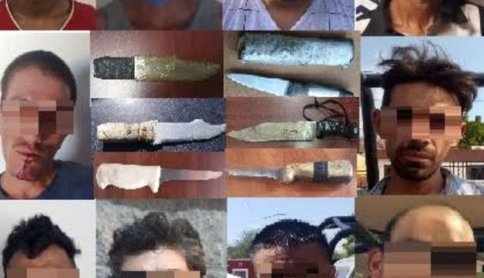 De acuerdo a los informes que diariamente presentan los elementos de Seguridad Pública, a lo largo de la semana fueron asegurados 32 individuos por el delito de portación de arma prohibida, 30 de ellos con objetos punzocortantes y dos con armas de fuego, recuperando tres de éstas últimas y 27 armas blancas.