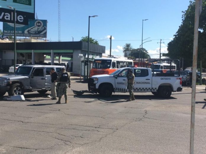 HERMOSILLO, SON.- Un vehículo de la Guardia Nacional impactó a uno particular en el cruce de Luis Encinas con Pino Suárez, registrando solamente pérdidas materiales.