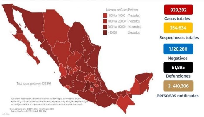 También confirmó que hay un total de 929 mil 392 casos totales de coronavirus en el país.