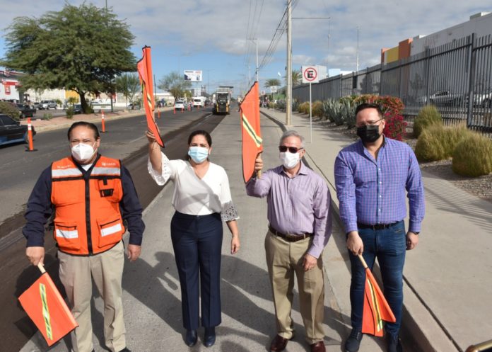 Hermosillo, Sonora; noviembre 09 de 2020.- La alcaldesa Celida López arrancó en el bulevar Antonio Quiroga la primera de 31 obras de mejoramiento de vialidades en las que se invertirán los 175 millones 500 mil pesos, que asignó para este propósito el Presidente Andrés Manuel López Obrador a través de SEDATU.