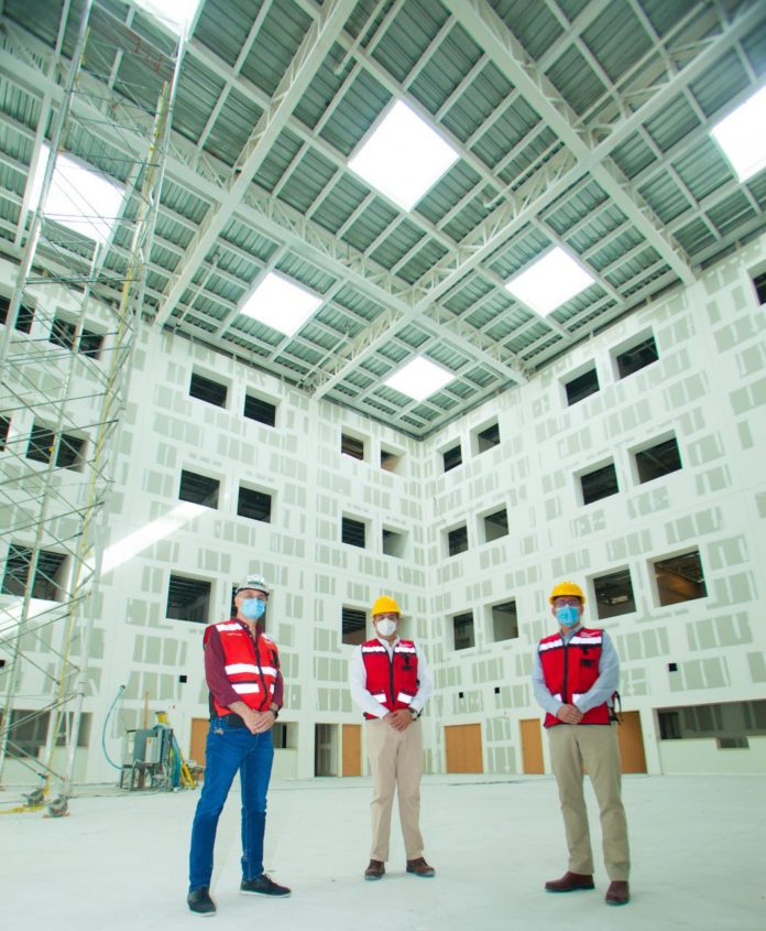 En el recorrido de supervisión el secretario de Salud junto a Carlos Sánchez Meneses, coordinador de Infraestructura Hospitalaria del INSABI y Ricardo Martínez Terrazas, secretario de Infraestructura y Desarrollo Urbano en Sonora, corroboraron el avance de 100% en la construcción del edificio principal de lo que será el nuevo hospital por sustitución.