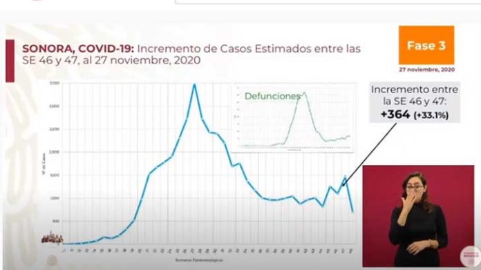 Sonora registró un incremento del 33.1 por ciento, equivalente a 364 casos de la semana 46 a la semana 47.