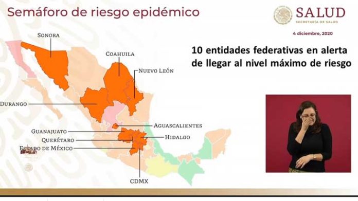 HERMOSILLO, SON.- El estado de Sonora se encuentra entre las 10 entidades federativas en alerta de llegar al nivel máximo de riesgo en el semáforo epidémico de la Secretaría de Salud.