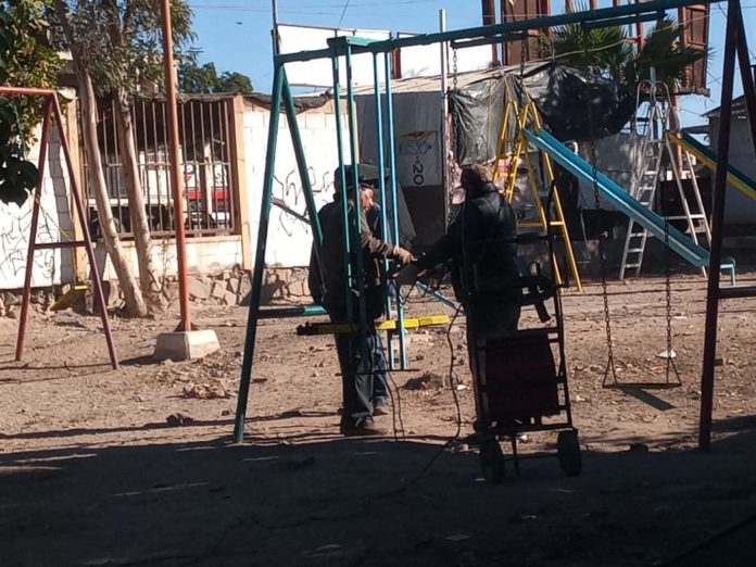 Empalme.- Con limpieza general, entre otras acciones, el Ayuntamiento, a través del Departamento de Parques y Jardines, llevó a cabo trabajos de mantenimiento a la canchita y juegos infantiles de la colonia ‘Luis Donaldo Colosio’.