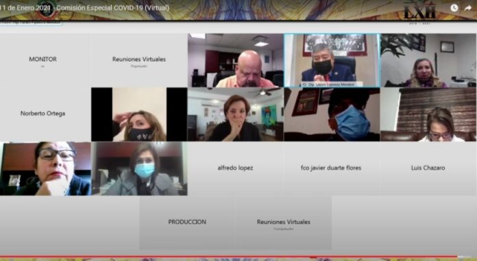Hermosillo, Son., enero 11 de 2021.- Para conocer los preparativos del Gobierno del Estado en relación a la recepción, distribución y aplicación de la vacuna contra el coronavirus a los sonorenses, los diputados de la Comisión de Atención a la Emergencia Sanitaria y Económica Covid-19 se reunieron con los Subsecretarios de Salud y de Administración estatales, a quienes manifestaron sus dudas sobre dicho proceso. El diputado Lázaro Espinoza Mendívil, presidente de la Comisión, consideró importante conocer de primera mano el proceso a desarrollar para la vacunación de los ciudadanos sonorenses y la atención posterior a cada uno de estos. En la reunión virtual, el diputado Espinoza Mendívil cedió el uso de la palabra a José Ricardo Espinoza Castro, subsecretario médico de la Secretaría de Salud del Estado de Sonora, quien en primer término dio a conocer la situación actual que se vive en la entidad por la contingencia sanitaria y, posteriormente, detalló los planes que desde la federación se han establecido para la recepción, distribución y aplicación del biológico en la entidad. El funcionario estatal explicó que la primera etapa de vacunación incluye al personal del sector salud, la segunda a los adultos mayores y personas vulnerables, y la tercera al resto de la población. En la etapa de preguntas y respuestas, la diputada Rosa Icela Martínez Espinoza cuestionó sobre los tiempos establecidos para las etapas de vacunación y propuso incluir al personal de servicios públicos municipales en la primera etapa de la aplicación. El funcionario explicó que las políticas para la vacunación son de orden federal, y que a los trabajadores de los servicios públicos municipales están considerados en la segunda etapa de la aplicación de la vacuna. La diputada María Dolores Del Río Sánchez se refirió a que se está viviendo una etapa más crítica por contagios