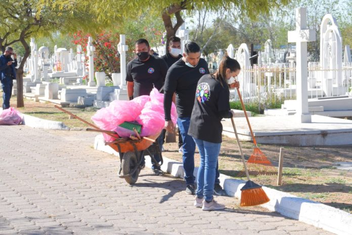Personal de Servicios Públicos Municipales e integrantes de la Red de Centros del Noroeste realizaron una jornada de limpieza en el emblemático Panteón Yáñez.