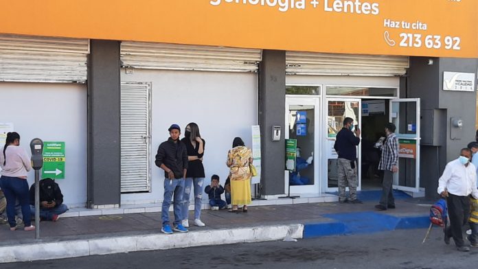 Lo anterior se pudo apreciar en un consultorio ubicado en el centro de Hermosillo, donde desde la mañana del miércoles antes de que el lugar abriera, a personas esperando para la aplicación de la prueba para detectar el coronavirus, dejando pasar a una cierta cantidad de personas para mantener el aforo permitido y haciendo esperar a los demás usuarios afuera del lugar.