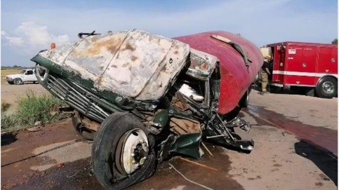 Un choque entre una pipa que transportaba agua y un camión, en el Valle del Yaqui, dejó como resultado dos personas fuertemente lesionadas.