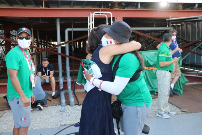 Ana Gabriela Guevara, directora general de la Comisión Nacional de Cultura Física y del Deporte, visitó el Campo de Tiro Yumenoshima para presenciar la actuación de Alejandra Valencia y Luis Álvarez en Tiro con Arco por equipos mixtos en los Juegos Olímpicos de Tokio 2020.
