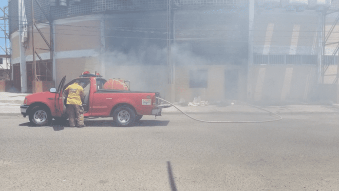 Según información compartida en el lugar, en una de las bodegas traseras del inmueble, a la que le fueron robadas las puertas y ventanas, sujetos desconocidos quemaban cables y basura, incendio que se les salió de control.