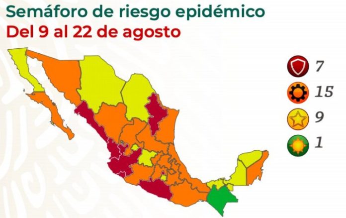 Sólo Chiapas se mantendrá en verde, mientras que habrá nueve estados en amarillo y 15 en naranja.