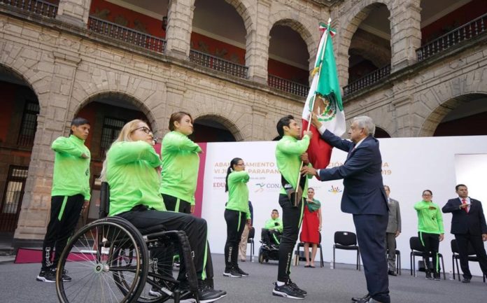 El Presidente abanderó a la delegación mexicana y les deseó éxito en la competencia. “Mujeres y hombres atletas que integran la delegación que representará a México en los Juegos Parapanamericanos de Lima, Perú 2019, encomiendo a su profundo amor por México esta bandera que simboliza su independencia, el honor y la integridad de nuestro país”, dijo el Presidente desde Palacio Nacional.