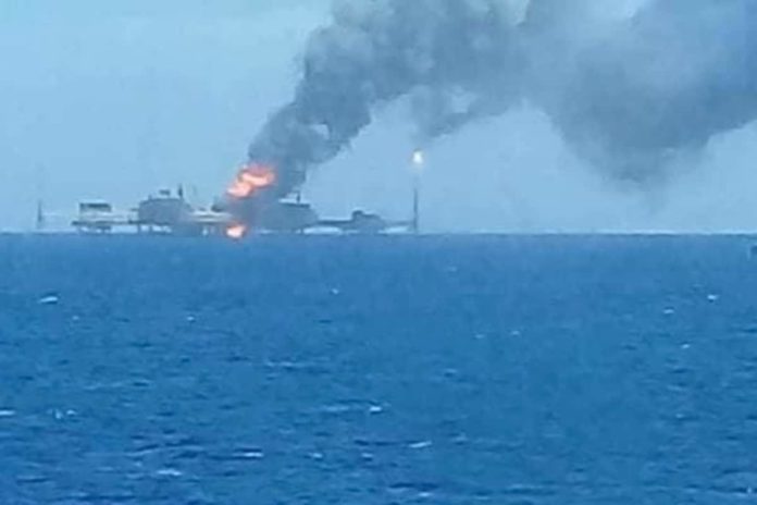 Usuarios reportaron una explosión e incendio en la plataforma Ku-A de Pemex, se evacuó la estructura debido a la magnitud del incendio.