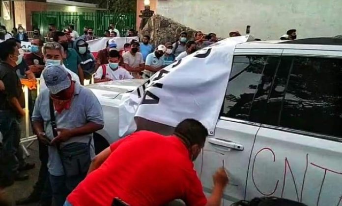 InicioUncategorizedMaestros de la CNTE pintan vehículo de AMLO durante bloqueo en Chiapas