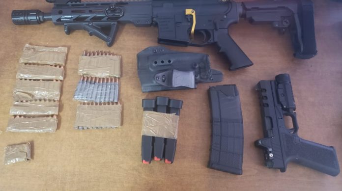 Las personas ingresaban procedentes de Estados Unidos en un vehículo Dodge Ram, color blanco, modelo 2012, transportando debajo de los asientos un arma calibre 5.56, una pistola calibre .9mm, cargadores y más de 80 cartuchos.