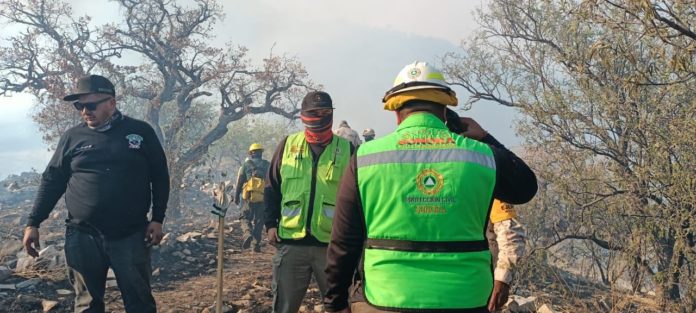 En la zona se encuentran actualmente alrededor de 30 brigadistas de Comisión Nacional Forestal (Conafor), Secretaría de la Defensa Nacional (Sedena), propietarios y Protección Civil estatal, Zona Norte.