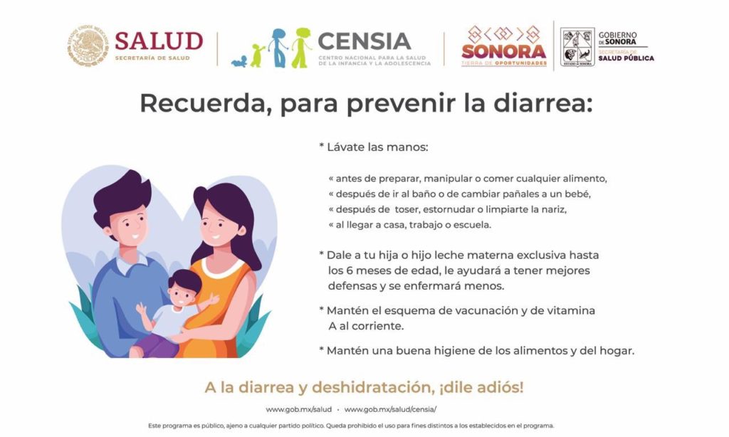La Secretaría de Salud Sonora (SSA), a través de la dirección general de Salud a la Persona, recomendó cuidar a niñas y niños de las enfermedades diarreicas agudas (EDA) y evitar complicaciones por la misma.