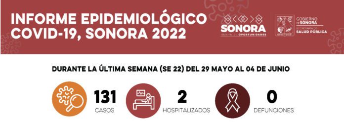 La Secretaría de Salud de Sonora (SSA) confirmó que ocurrieron 131 casos y ninguna defunción por Covid-19 en la semana epidemiológica 22, que abarca del 29 de mayo al 4 de junio.