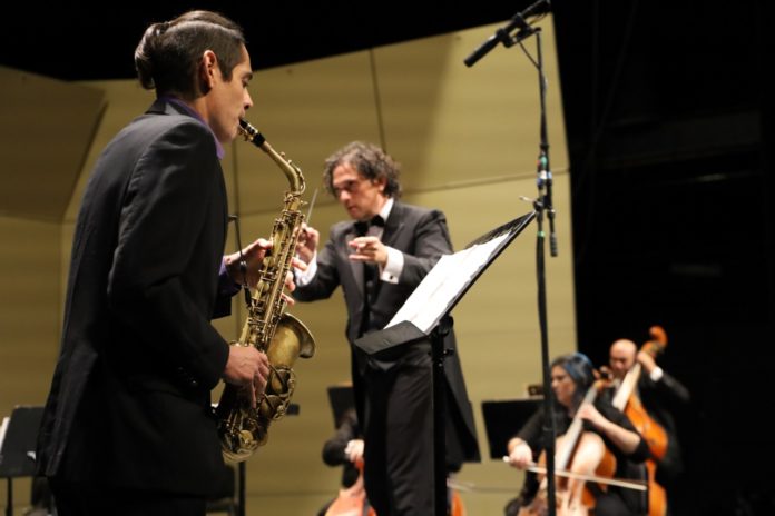 La agrupación, dirigida por el maestro Héctor Acosta, ofreció un cierre de temporada a su nivel: maravilloso. Ante un público cautivo, la primera pieza que tocaron fue “Concierto para saxofón op. 9” de Aleksandr Glazunov y que contó con la gran interpretación de Juan Carlos Alfaro en el saxofón alto. Esta obra, escrita por Glazunov un año antes de su muerte-en 1936- tiene la particularidad que rompe su estilo, otrora romántico y conservador, y pasa a incorporar elementos más modernos, incluso jazzísticos. La interpretación de Juan Carlos Alfaro dio fe de ello, una ejecución bella y potente.