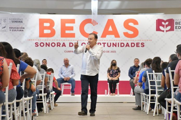 Acompañado por el secretario de Educación y Cultura, Aarón Grageda Bustamante, del secretario de Hacienda, Omar Del Valle Colosio, así como del director del Instituto de Becas y Crédito Educativo (Ibcees), el mandatario hizo entrega de 334 becas para estudiantes de educación básica, así como 119 becas de universidad, destacando la importancia de este fondo y reiterando su compromiso de incrementarlo para el año entrante.