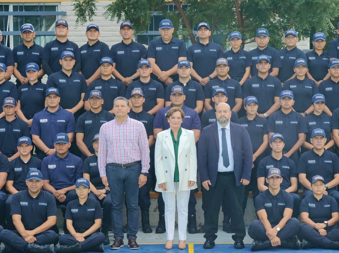 María Dolores Del Río Sánchez, secretaria de Seguridad Pública de Sonora, supervisó a futuros policías que forman parte de la generación Delta de cadetes en el Instituto Superior de Seguridad Pública (Isspe).