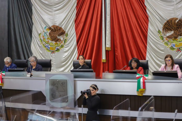 El y las integrantes de la mesa directiva presentaron a la asamblea el Acuerdo en el que se hace constar el cómputo de votos emitidos por los ayuntamientos respecto de la Ley número 88, que reforma, deroga y adiciona diversas disposiciones de la Constitución Política del Estado de Sonora en materia de justicia laboral, aprobada por el Pleno el 13 de