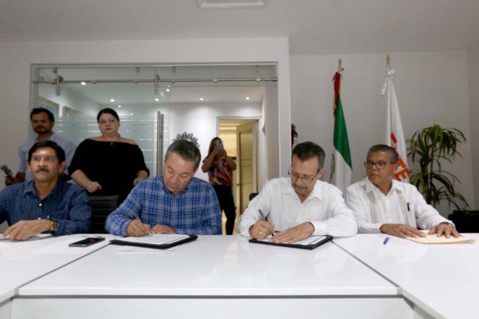 El secretario de Educación y Cultura y el secretario general de la sección 28 del Sindicato Nacional de Trabajadores de la Educación (SNTE), César Adalberto Salazar López, firmaron una minuta de acuerdos para regularizar y dignificar los espacios laborales de jefes de sector y supervisores escolares.