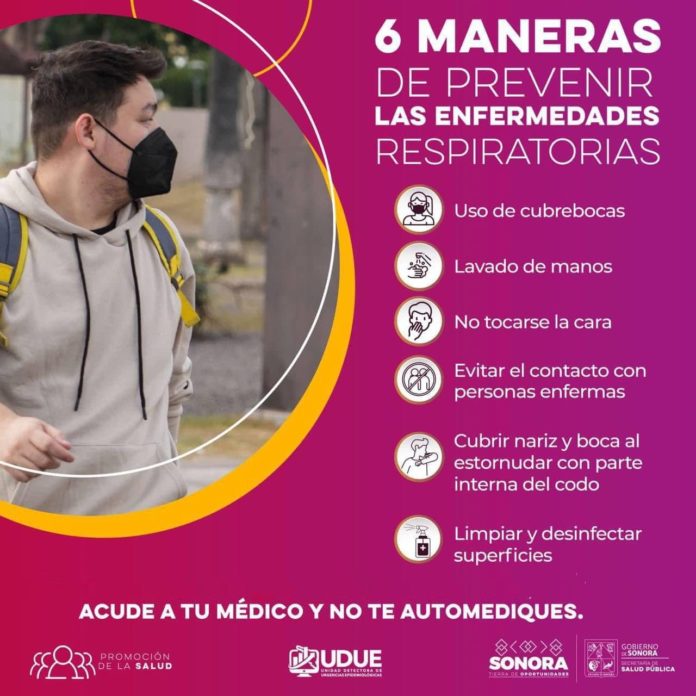 La SSA recordó que existen seis medidas preventivas para evitar enfermedades respiratorias, como el uso del cubreboca, lavado de manos frecuente, no tocarse la cara, evitar el contacto con personas enfermas, cubrir nariz y boca al estornudar con la parte interna del codo, limpiar y desinfectar superficies, mismas acciones que previenen los contagios por influenza y Covid-19.