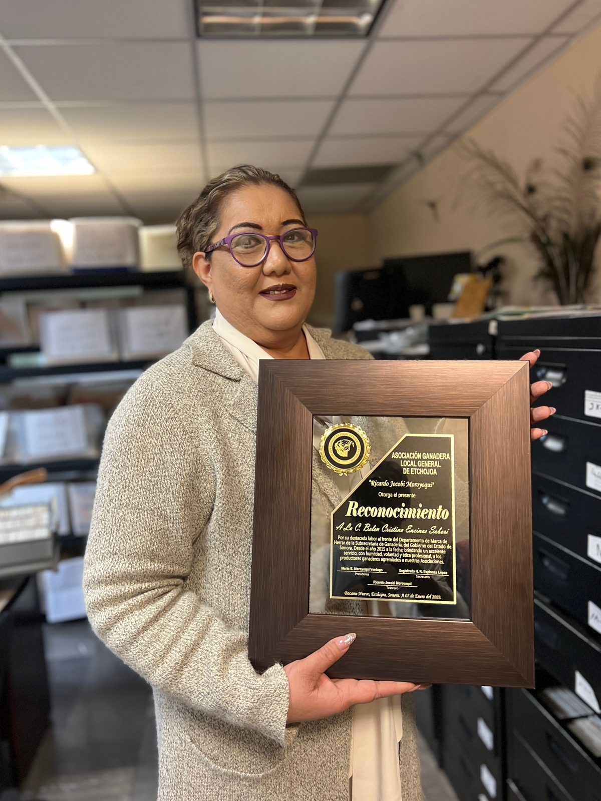 Como parte de ese impulso resaltó el caso de Belém Cristina Encinas Sábori, quien fue reconocida por la Unión Ganadera Regional de Sonora (UGRS) y asociaciones ganaderas locales por su atención y resolución a trámites como administradora de Proyectos de Títulos de Marcas de Herrar y Señal de Sangre, en la Subsecretaría de Ganadería.