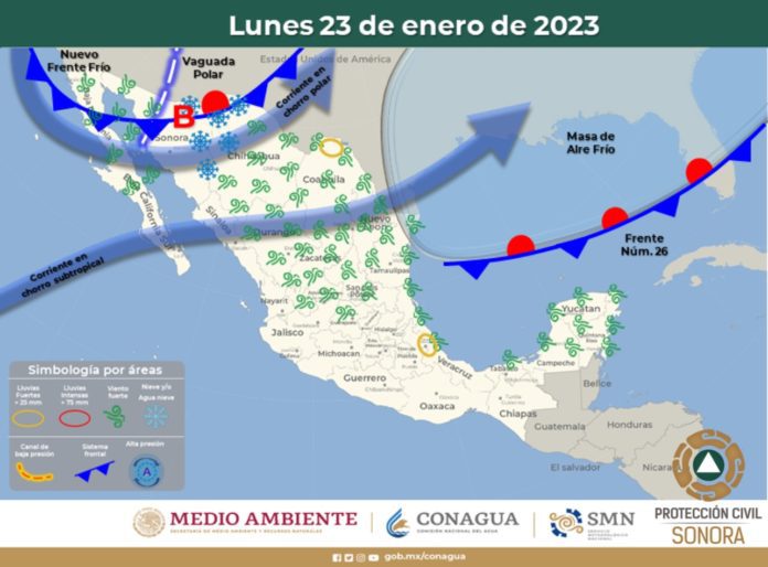 La Dirección de Atención a Emergencias y Desastres de la Coordinación Estatal de Protección Civil (CEPC), emitió una solicitud a los 72 municipios de Sonora para que activen su Comité Operativo de Emergencias (COE) por el arribo de los frentes fríos 26 y 27 al estado.