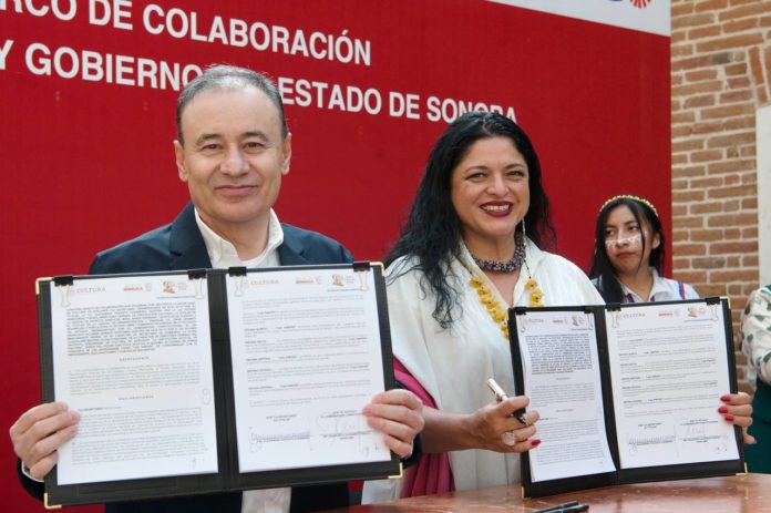 A través de un convenio firmado por el Gobierno de Sonora y la Secretaría de Cultura del Gobierno de México se estrechará la colaboración para promover los atractivos en la materia con que cuenta la entidad, así como en la rehabilitación de la infraestructura cultural.