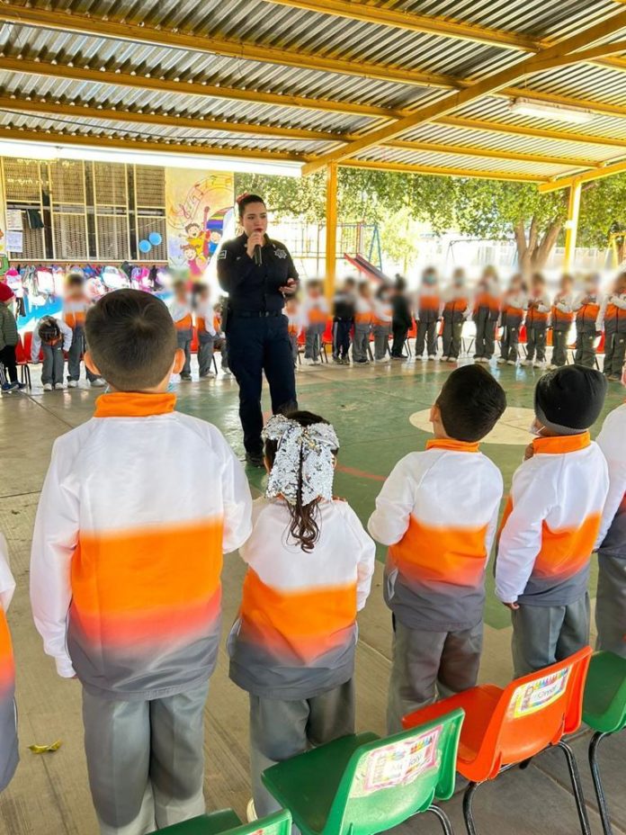 En su estancia en escuelas, principalmente ubicadas en sectores focalizados o con incidencia delictiva, las y los agentes comparten con la comunidad estudiantil información sobre la importancia de luchar contra la violencia y el bullying o acoso escolar. También promueven el amor por la patria, valores como el respeto, solidaridad, empatía, funciones de la Policía Estatal, uso de la línea 9-1-1 en caso de emergencias y 089 para denuncia anónima.