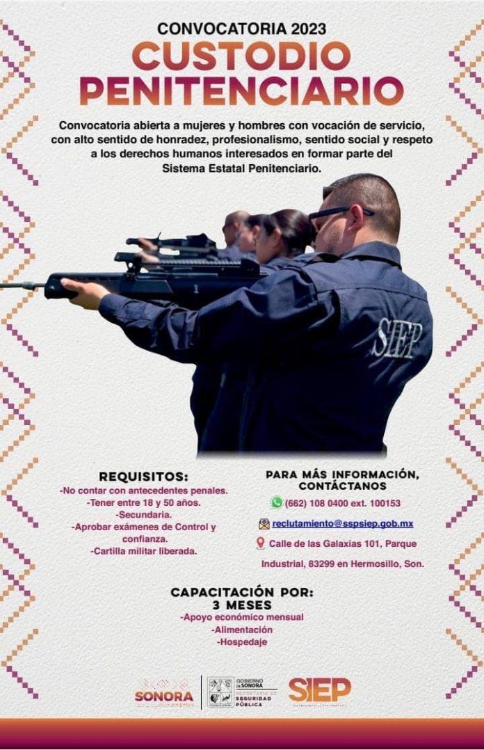Para fortalecer la seguridad y el orden al interior de los 13 Centros de Reinserción Social (Ceresos) de Sonora, la Secretaría de Seguridad (SSP) inició el proceso de reclutamiento para personal custodio penitenciario.