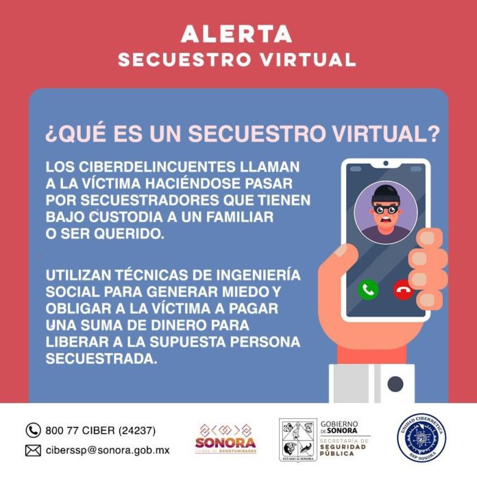 La Secretaría de Seguridad Pública (SSP) de Sonora a través de la Unidad Cibernética, emitió recomendaciones a la ciudadanía para prevenir la modalidad de secuestro virtual que utilizan los ciberdelincuentes para cometer fraude o extorsión.