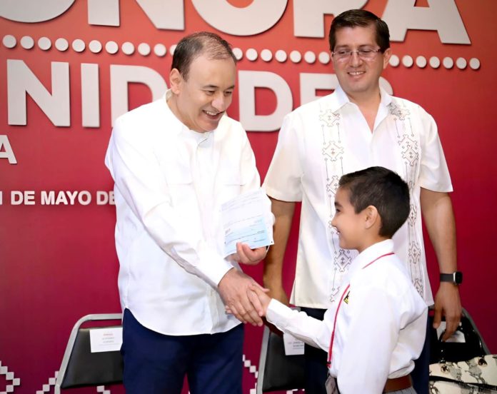 En el marco de la entrega de más de cinco mil becas a alumnas y alumnos de educación básica en Navojoa, el mandatario estatal mencionó que en la presente administración se han entregado más de 194 mil becas, lo que equivale a una inversión de mil 114 millones de pesos para estudiantes de primaria, secundaria y universidad.