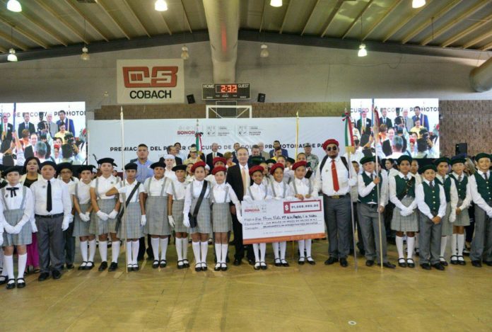 En segundo y tercer puesto quedaron las escuelas José Vasconcelos, de Nogales, y Josefina Viuda de Gálvez, de Cajeme, respectivamente, recibiendo cada institución material deportivo como premio.