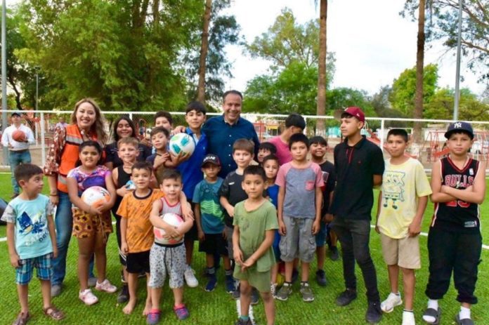 La colonia Ranchito hoy tiene un nuevo rostro, expresó Antonio Astiazarán al entregar a familias la rehabilitación del Parque de los Yaquis en la que invirtieron 2.4 millones de pesos para mejoras a la cancha de basquetbol, fútbol, pista para trotar, macetera y banquetas, por mencionar algunos cambios.