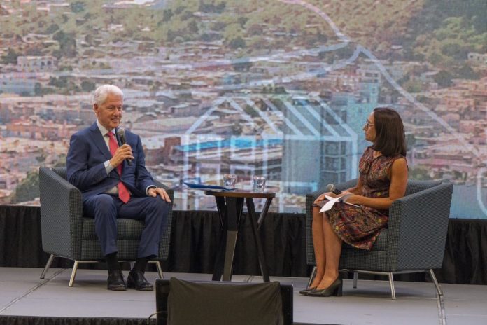 En el conversatorio magistral moderado por Tania Ortiz Mena, presidenta de la compañía Sempra Infraestructura, especialista en desarrollo, construcción y operación de infraestructura energética, Clinton felicitó a Antonio Astiazarán porque Hermosillo es líder en el uso de energías limpias al contar con 220 patrullas eléctricas, muchas más incluso que en Nueva York o en cualquier lugar del mundo.