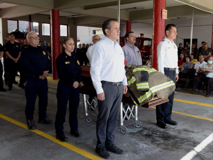El Presidente Municipal Antonio Astiazarán Gutiérrez estuvo presente en la guardia de honor y último pase de lista que se realizó para despedir al bombero Alejandro Duarte Jáquez, quien falleció en días recientes.