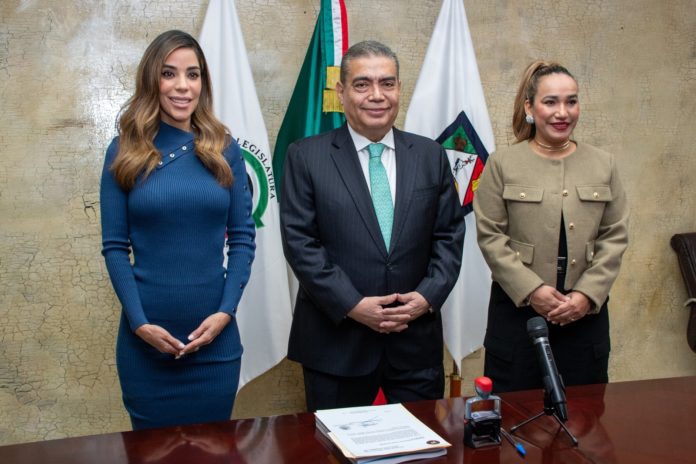 La legisladora, acompañada por la diputada Diana Karina Barreras Samaniego, presidenta de la Comisión de Justicia y Derechos Humanos, recibió este informe a nombre de los diputados integrantes de la LXIII Legislatura, el cual será sometido a análisis por parte de esta soberanía.