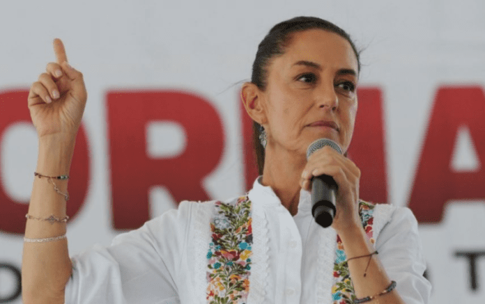 Los participantes expresan consignas de apoyo al presidente Andrés Manuel López Obrador y a Sheinbaum, creando un ambiente de apoyo masivo.