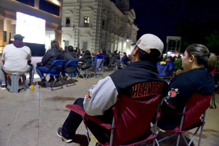 Con una gran emoción, decenas de personas de todas las edades fueron testigos del triunfo de Los Naranjeros de Hermosillo en el tercer juego de la final de béisbol con el equipo Venados de Mazatlán, que se trasmitió este martes de manera gratuita en la Plaza Zaragoza.
