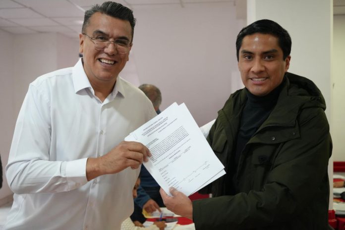 Acompañado por el dirigente nacional del PT AlbertoAnayaGt el ahora candidato contara con el respaldo de los partidos Morena, el Verde Ecologista, que junto al PT conforman la coalición «Sigamos Haciendo Historia».