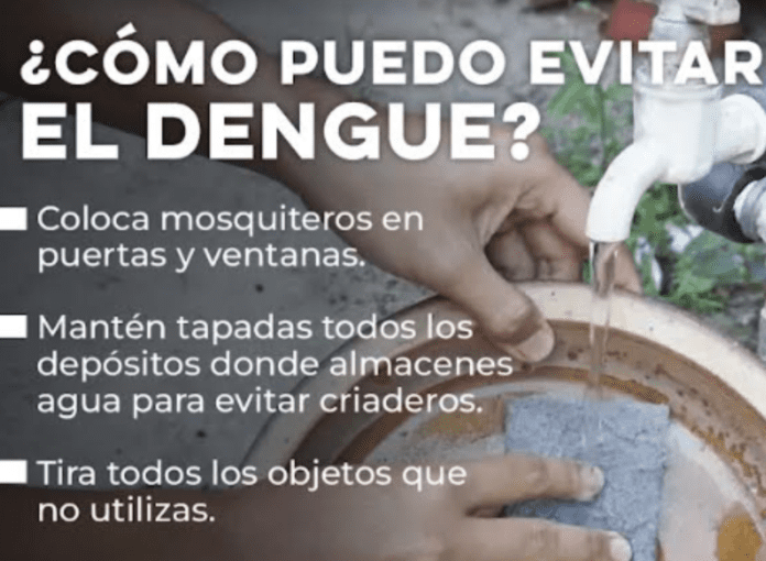 De acuerdo a la institución, las principales recomendaciones para prevenir el dengue son: eliminar los criaderos de mosquitos, mismos que pueden formarse con corcholatas, tambos, botes y botellas que contengan agua, así como llantas o lugares donde el líquido se acumule, ya que, la mosquito transmisora del dengue suele reproducirse en agua limpia.