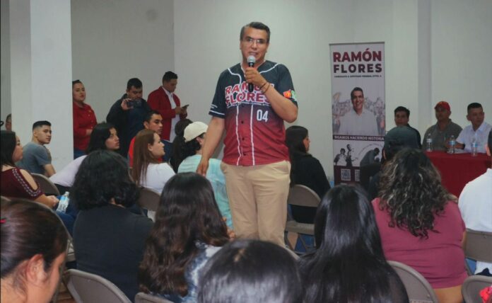 El aspirante a Legislador Federal por el 04 distrito aprovecho el encuentro que sostuvo con jóvenes del puerto, para promover el voto a favor de los candidatos de la Cuarta Transformación, así como motivar para que cada día más jóvenes se integren a la política y al servicio público.